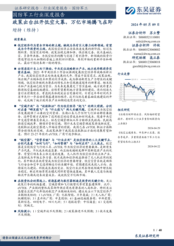【东吴证券】【20240509】国防军工行业深度报告-政策出台拉开低空大幕-万亿市场腾飞在即-40页
