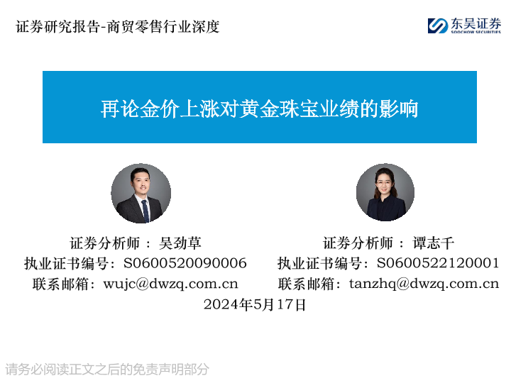 【东吴证券】【20240518】再论金价上涨对黄金珠宝业绩的影响-27页