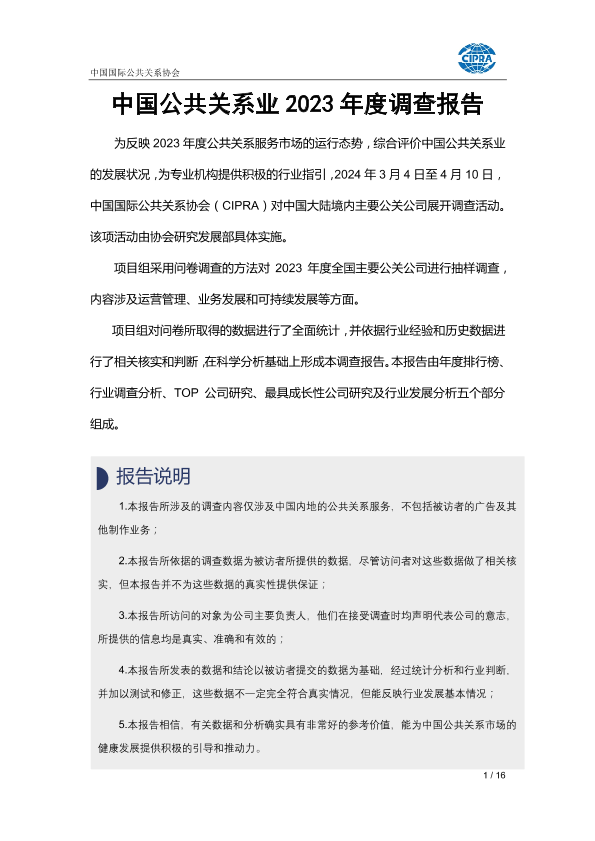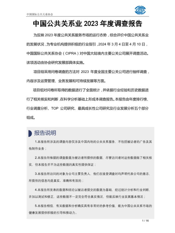 【中国国际公共关系协会】【20240520】中国公共关系业2023年度调查报告-16页