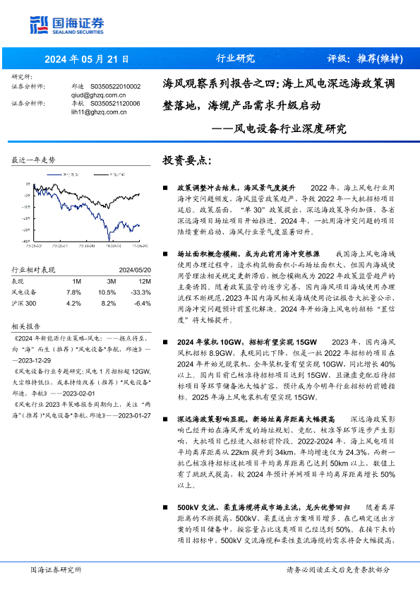 【国海证券】【20240521】海风观察系列报告之四:海上风电深远海政策调整落地,海缆产品需求升级启动-41页