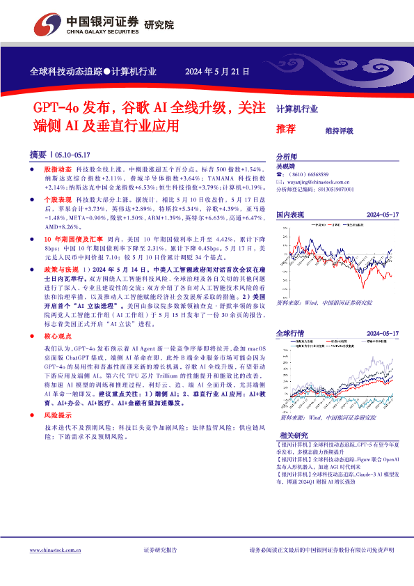 【银河证券】【20240523】全球科技动态追踪-GPT-4o发布-谷歌AI全线升级-关注端侧AI及垂直行业应用-12页