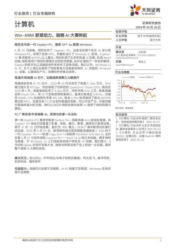 【天风证券】【20240526】Win-ARM联盟助力,端侧AI大幕将起-10页
