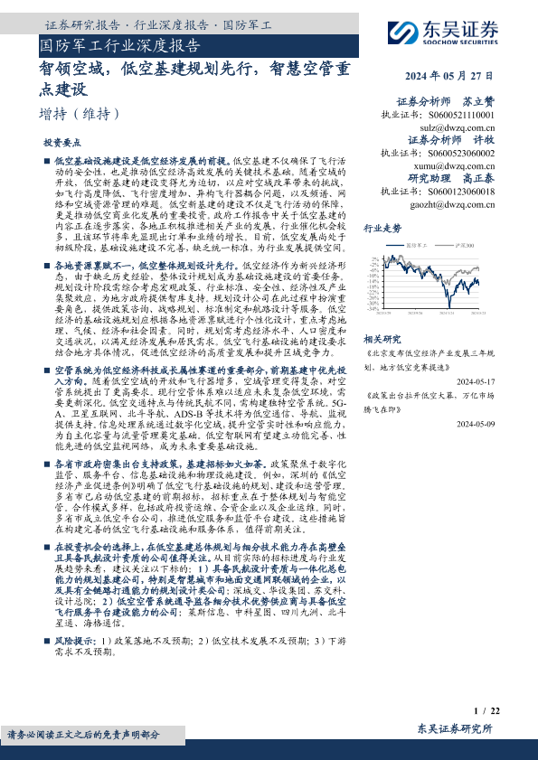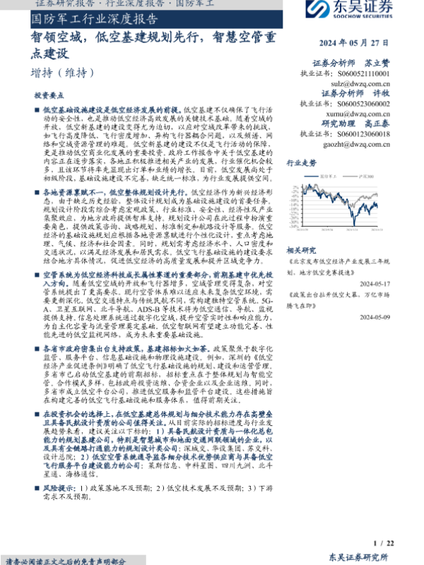 【东吴证券】【20240527】国防军工行业深度报告 智领空域,低空基建规划先行,智慧空管重点建设-22页