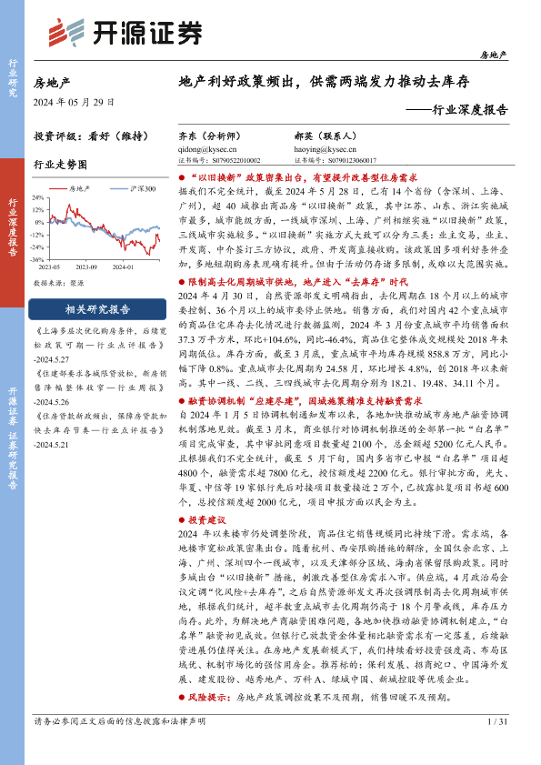 【开源证券】【20240529】地产利好政策频出-供需两端发力推动去库存-31页