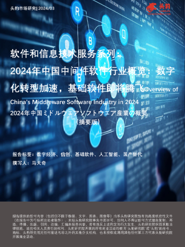 【头豹研究院】【202403】2024年中国中间件软件行业概览:数字化转型加速,基础软件即将腾飞(摘要版)-9页