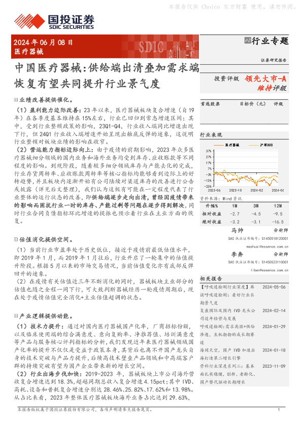 供给端出清 医疗器械 国投证券 行业景气度 需求端恢复