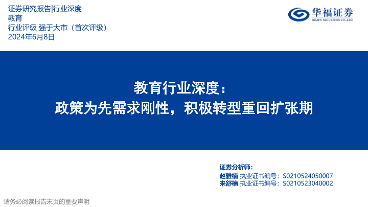 【华福证券】【20240608】教育行业深度 政策为先需求刚性,积极转型重回扩张期-46页