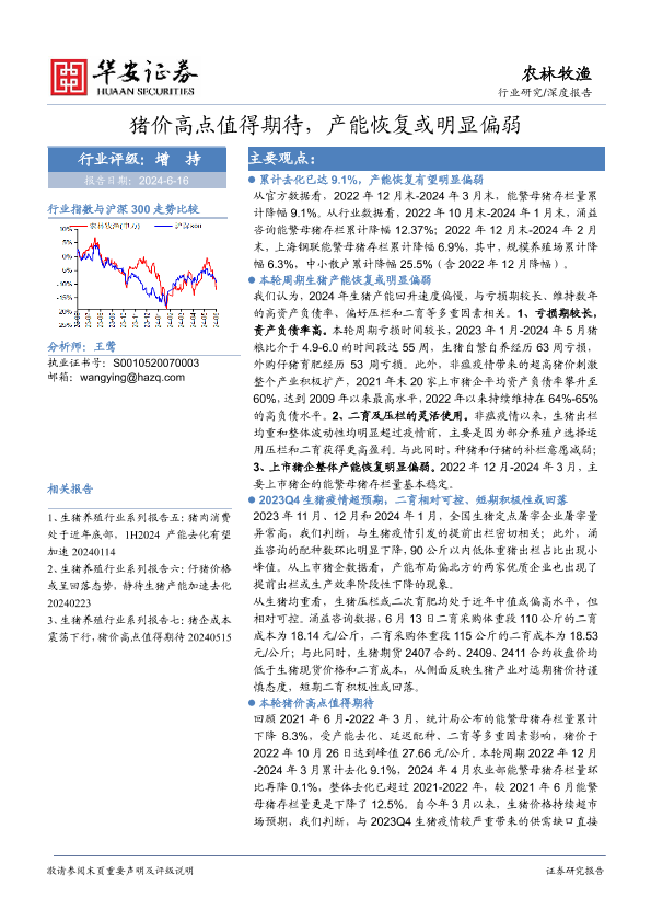 【华安证券】【20240616】2024-06-18-农林牧渔深度报告-猪价高点值得期待-产能恢复或明显偏弱-20页