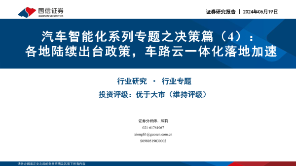 【国信证券】【20240619】汽车智能化系列专题之决策篇(4):各地陆续出台政策,车路云一体化落地加速-27页