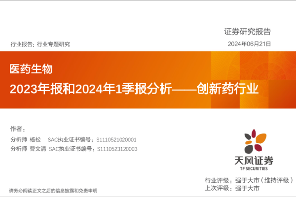 【天风证券】【20240621】2024-06-22-创新药行业2023年报和2024年1季报分析-14页