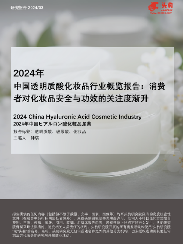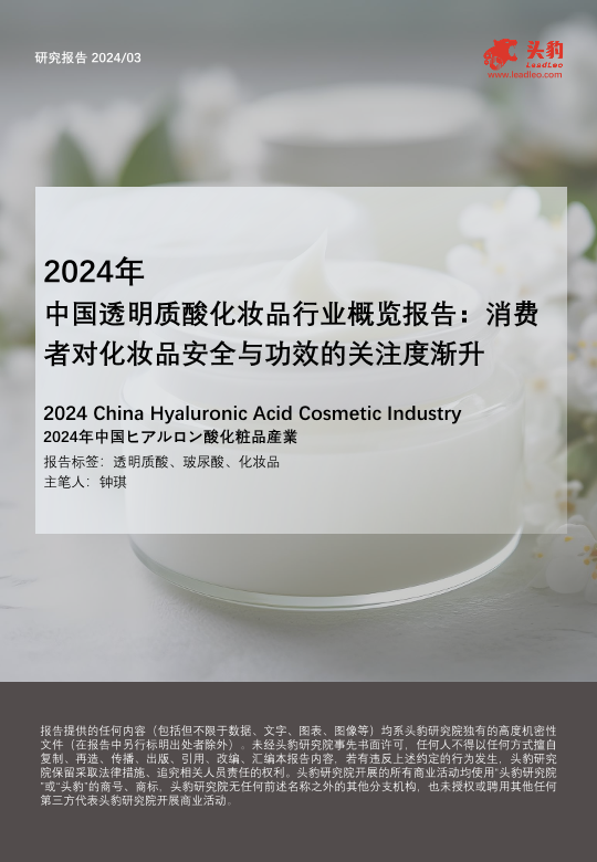 【头豹研究院】【202403】2024年透明质酸化妆品行业概览-消费者对化妆品安全与功效的关注度渐升-21页