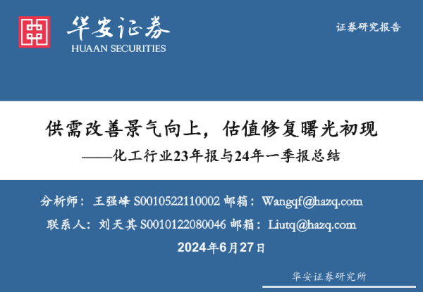 【华安证券】【20240627】化工行业23年报与24年一季报总结-供需改善景气向上-估值修复曙光初现-86页