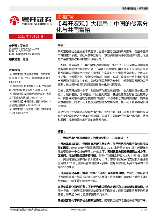 【粤开证券】【20210725】大棋局:中国的贫富分化与共同富裕-25页