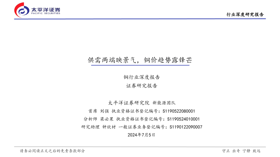 【太平洋证券】【20240708】2024-07-08-铜行业深度报告-供需两端映景气-铜价趋势露锋芒-35页
