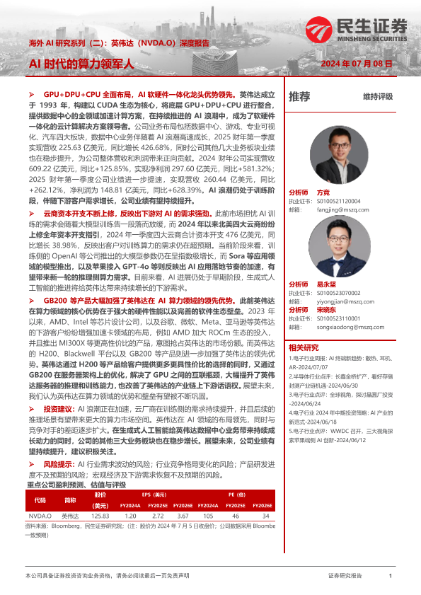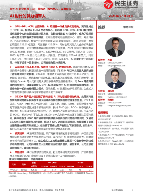【民生证券】【20240708】海外AI研究系列(二):英伟达深度报告-AI时代的算力领军人-29页