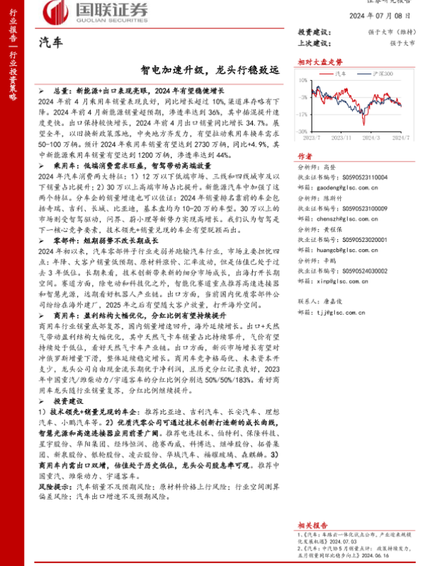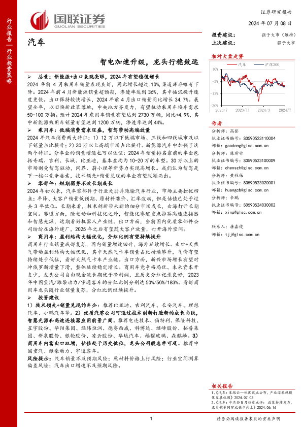 【国联证券】【20240708】汽车:智电加速升级,龙头行稳致远-58页