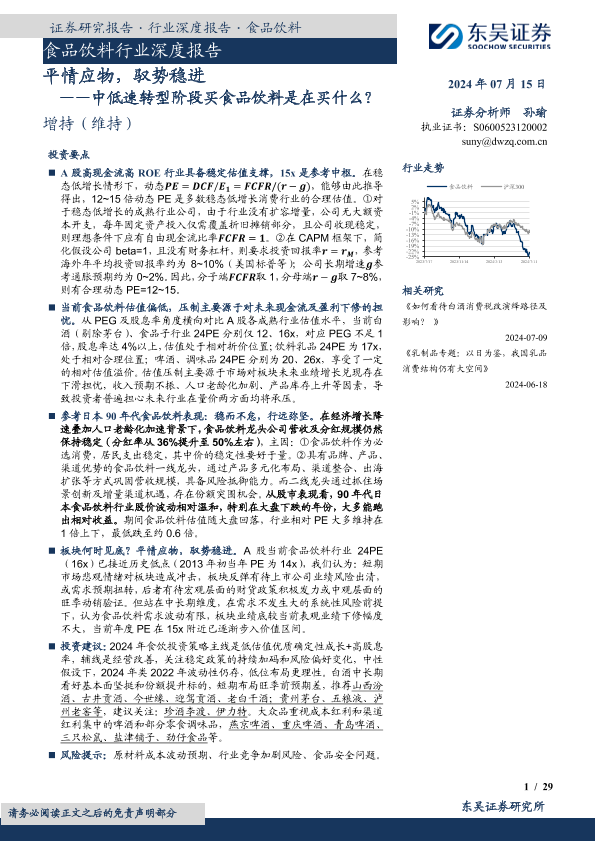 【东吴证券】【20240715】食品饮料行业深度报告:中低速转型阶段买食品饮料是在买什么?-29页