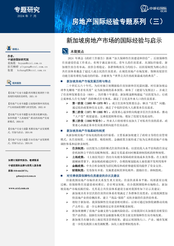 【中诚信国际】【20240723】房地产国际经验专题系列(三)-新加坡房地产市场的国际经验与启示-17页