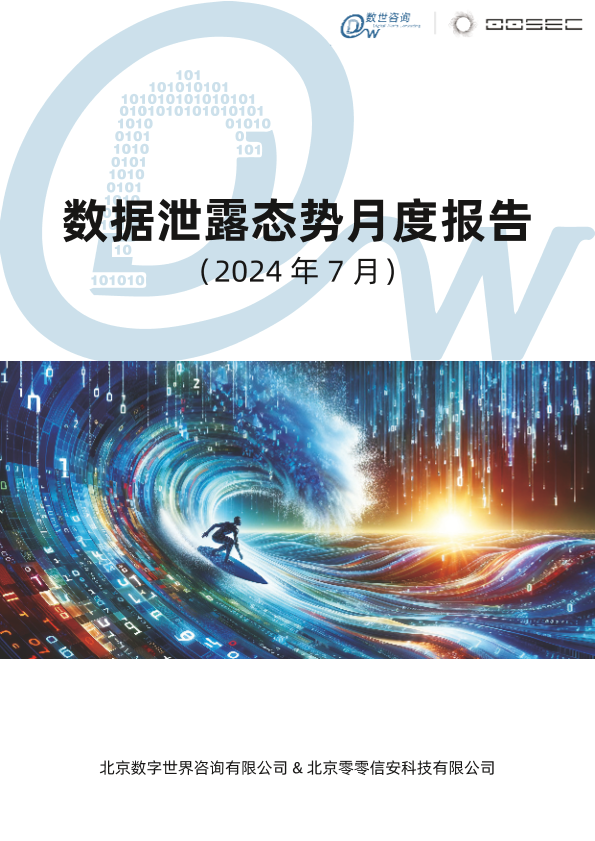 【北京数字世界咨询有限公司&北京零零信安科技有限公司】【20240726】数据泄露态势月度报告(2024年7月)-32页