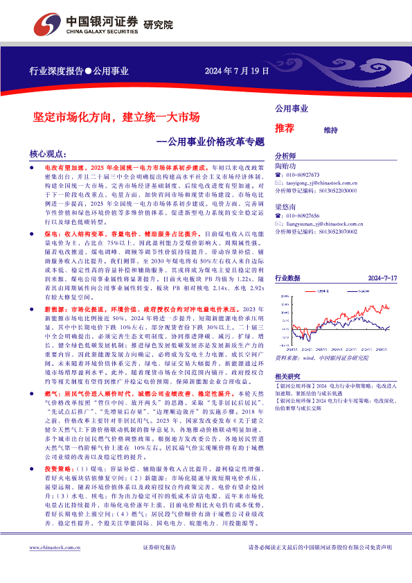 【银河证券】【20240727】坚定市场化方向,建立统一大市场--公用事业价格改革专题-29页