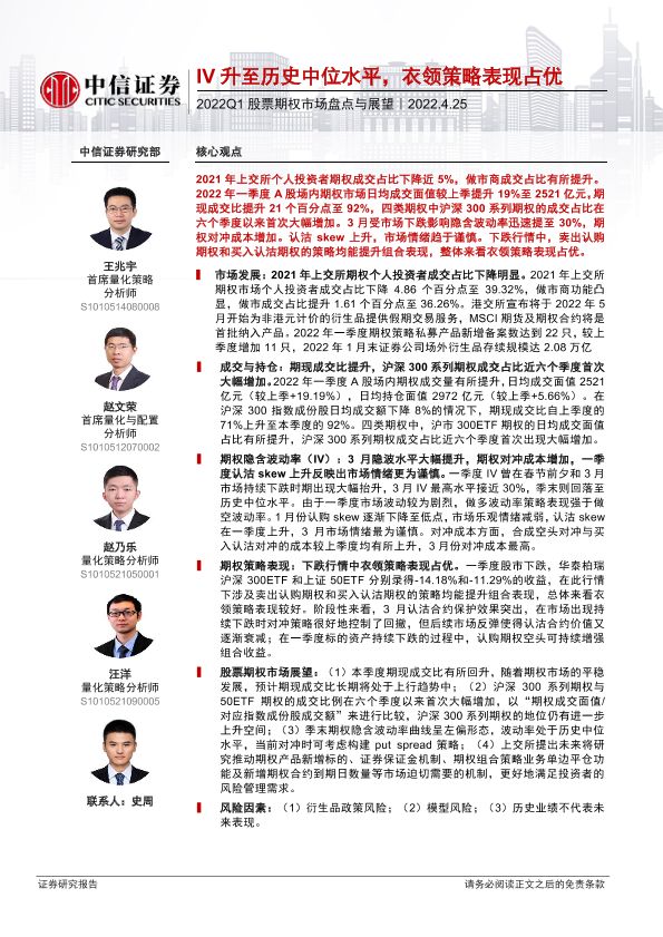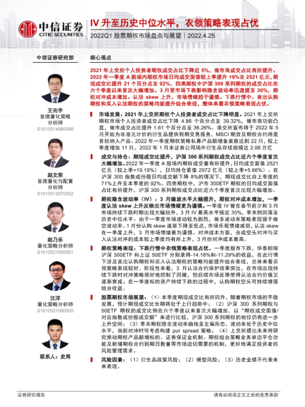【中信证券】【20220425】2022Q1股票期权市场盘点与展望:IV升至历史中位水平,衣领策略表现占优-20页