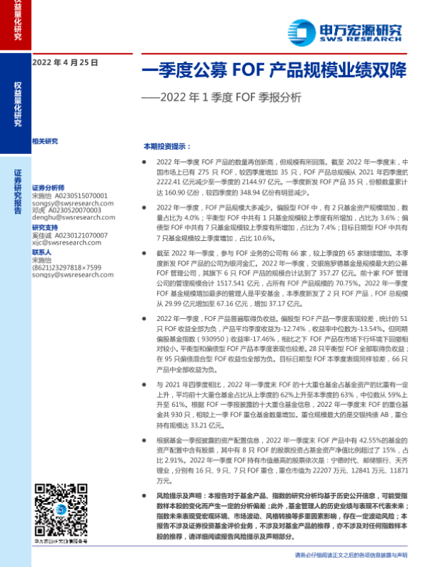 【申万宏源】【20220425】2022年1季度FOF季报分析:一季度公募FOF产品规模业绩双降-20页
