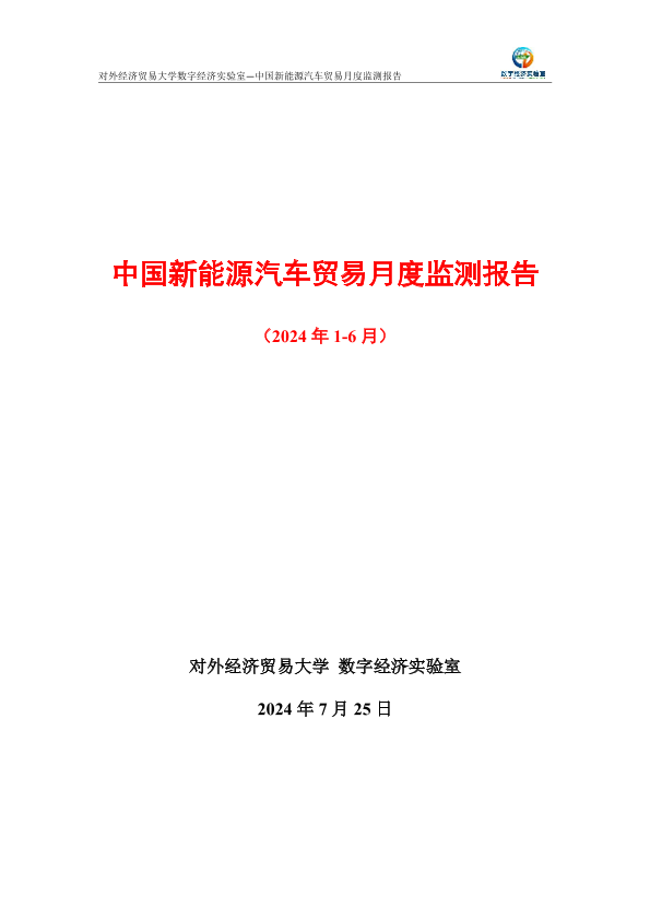 【对外经济贸易大学数字经济实验室】【20240725】中国新能源汽车贸易月度(2024年1-6月)监测报告-10页