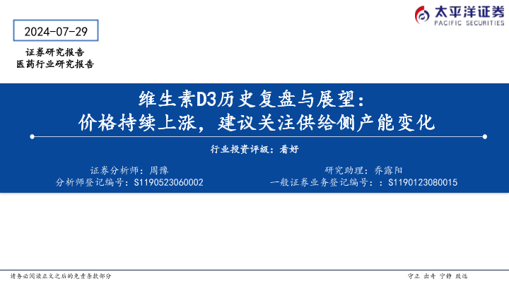 【太平洋证券】【20240805】维生素D3历史复盘与展望:价格持续上涨,建议关注供给侧产能变化-17页