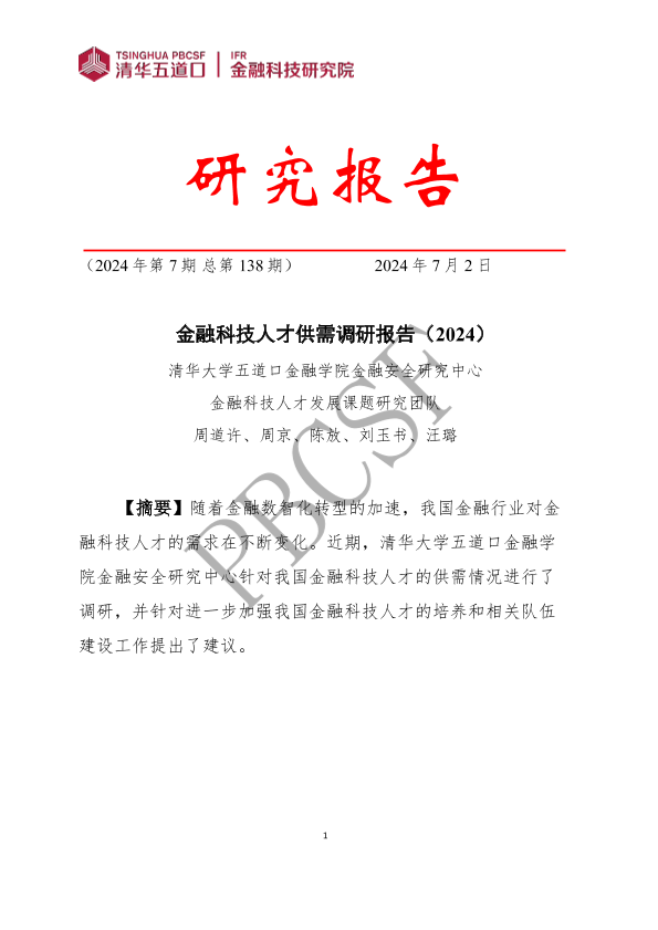【清华大学五道口金融学院金融安全研究中心】【20240702】金融科技人才供需调研报告(2024)-39页