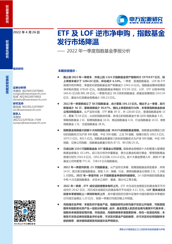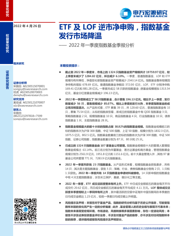 【申万宏源】【20220426】2022年一季度指数基金季报分析:ETF及LOF逆市净申购,指数基金发行市场降温-57页