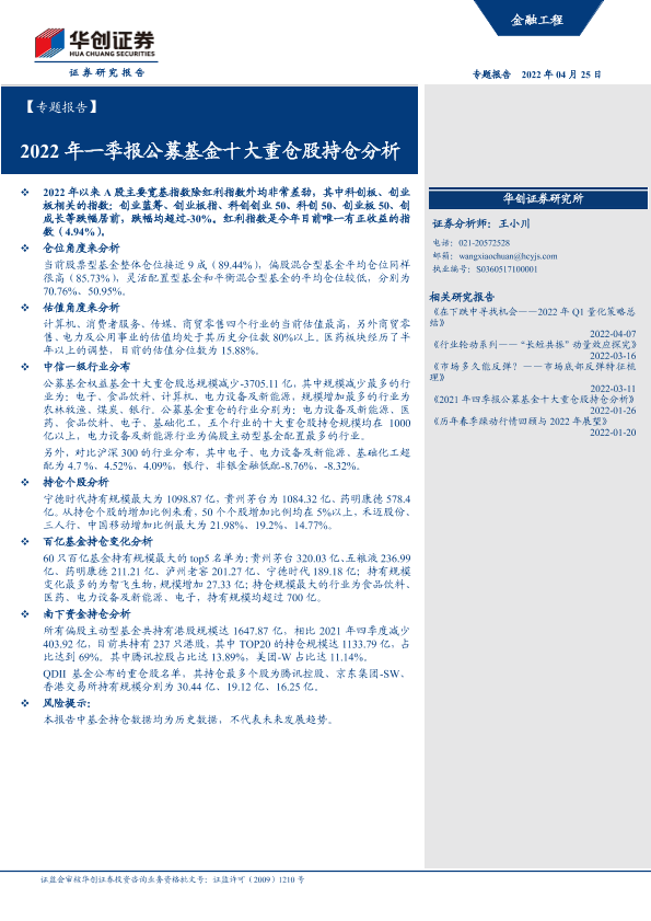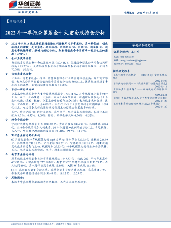 【华创证券】【20220425】2022年一季报公募基金十大重仓股持仓分析-28页