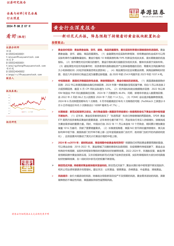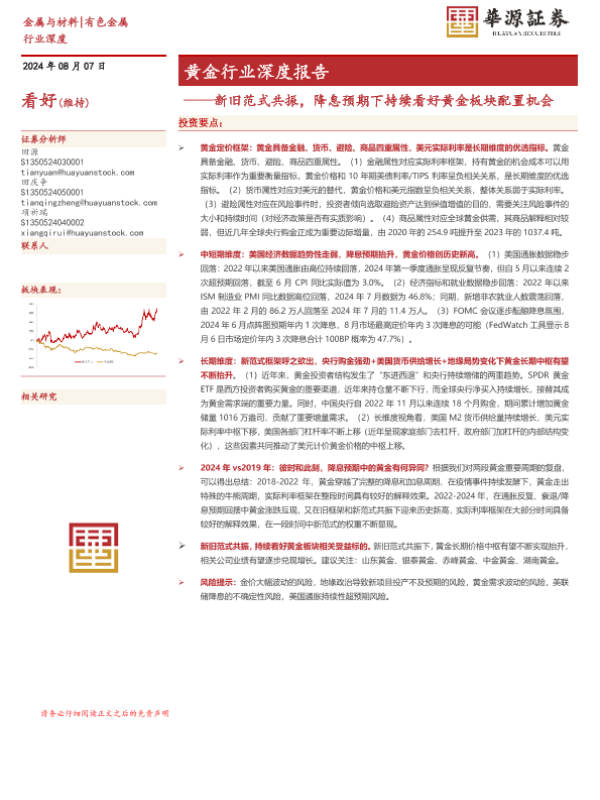 【华源证券】【20240807】2024-08-08-黄金行业深度报告-新旧范式共振-降息预期下持续看好黄金板块配置机会-24页