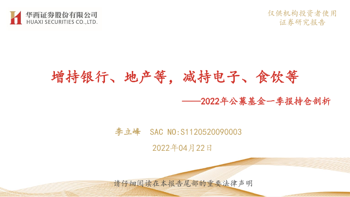 【华西证券】【20220422】2022年公募基金一季报持仓剖析:增持银行、地产等,减持电子、食饮等-72页