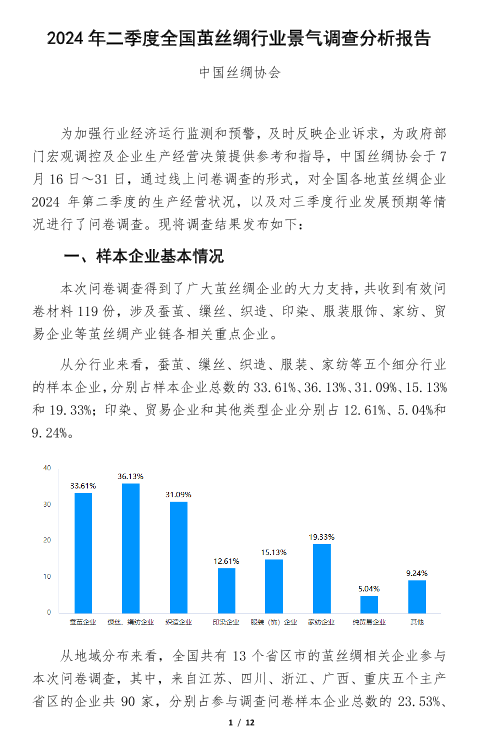 【中国丝绸协会】【20240815】2024年二季度全国茧丝绸行业景气调查分析报告-12页