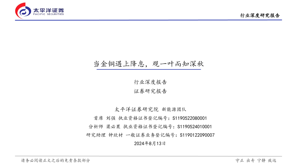 【太平洋证券】【20240813】2024-08-16-有色金属行业深度报告-当金铜遇上降息-观一叶而知深秋-18页