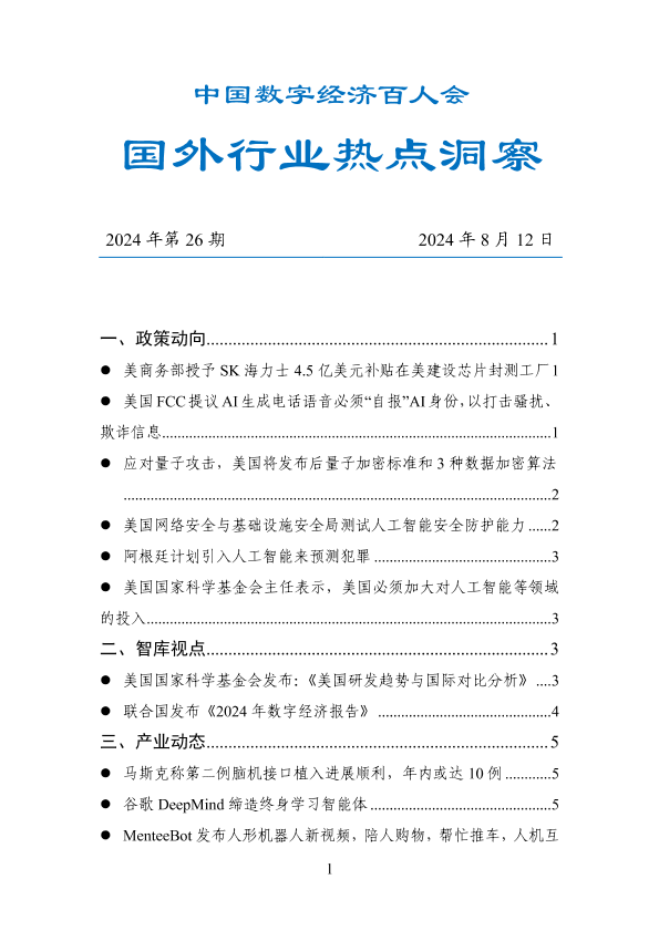 【中国数字经济百人会】【20240812】2024-08-17-国外行业热点洞察报告-18页