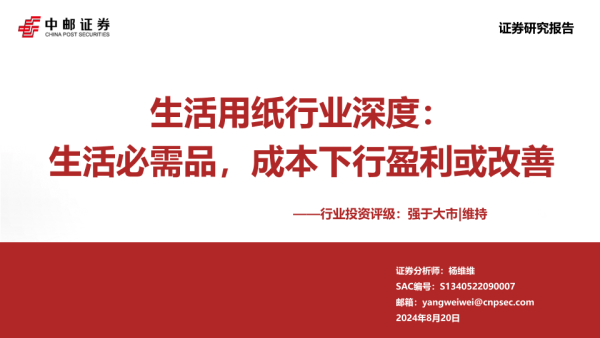 【中邮证券】【20240820】2024-08-22-生活用纸行业深度-生活必需品-成本下行盈利或改善-44页