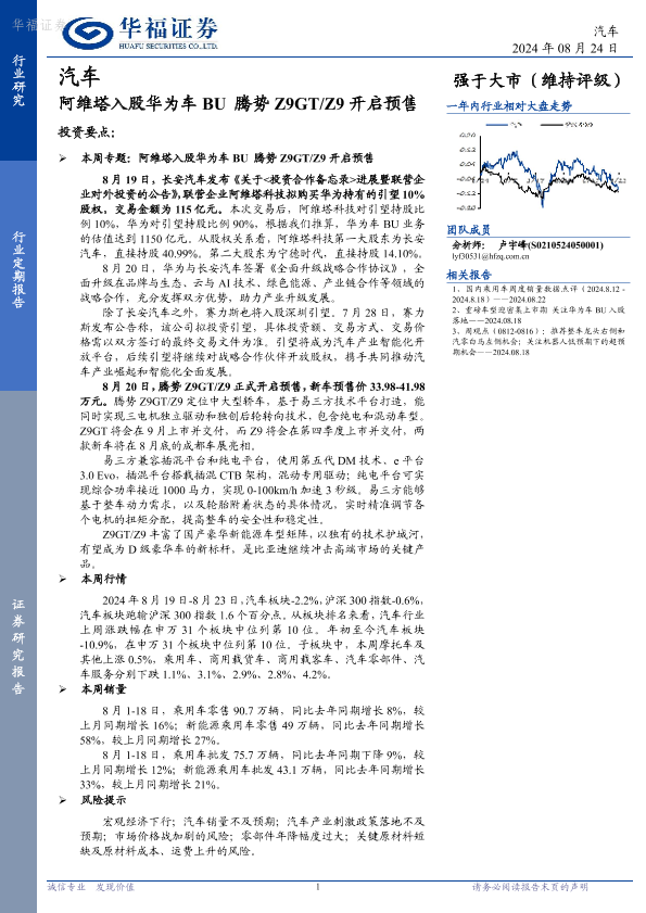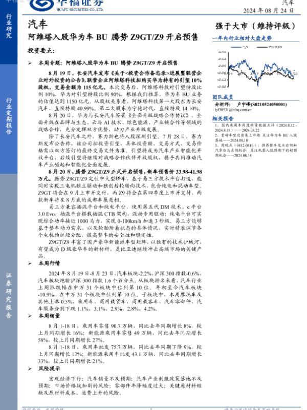 【华福证券】【20240824】2024-08-25-汽车行业定期报告-阿维塔入股华为车BU腾势Z9GTZ9开启预售-12页