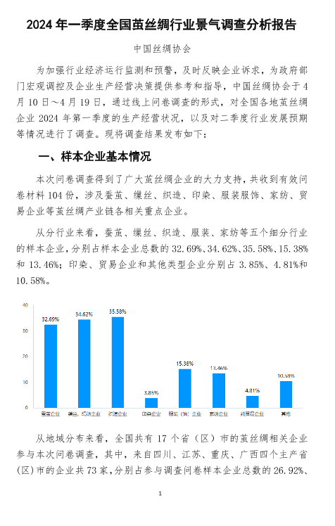 【中国丝绸协会】【20240826】2024年一季度全国茧丝绸行业景气调查分析报告-16页