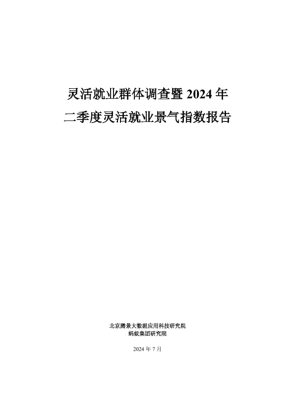 【北京腾景大数据应用科技研究院】【202407】2024年二季度灵活就业调查报告-33页