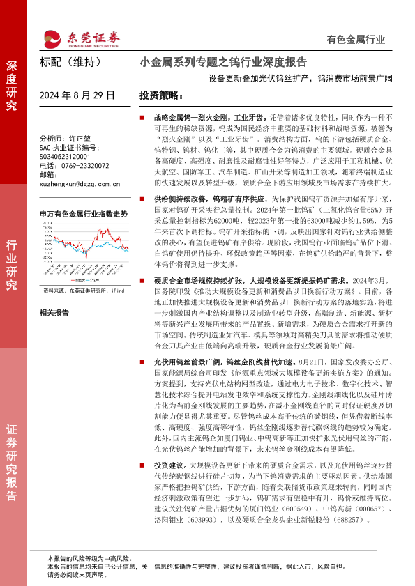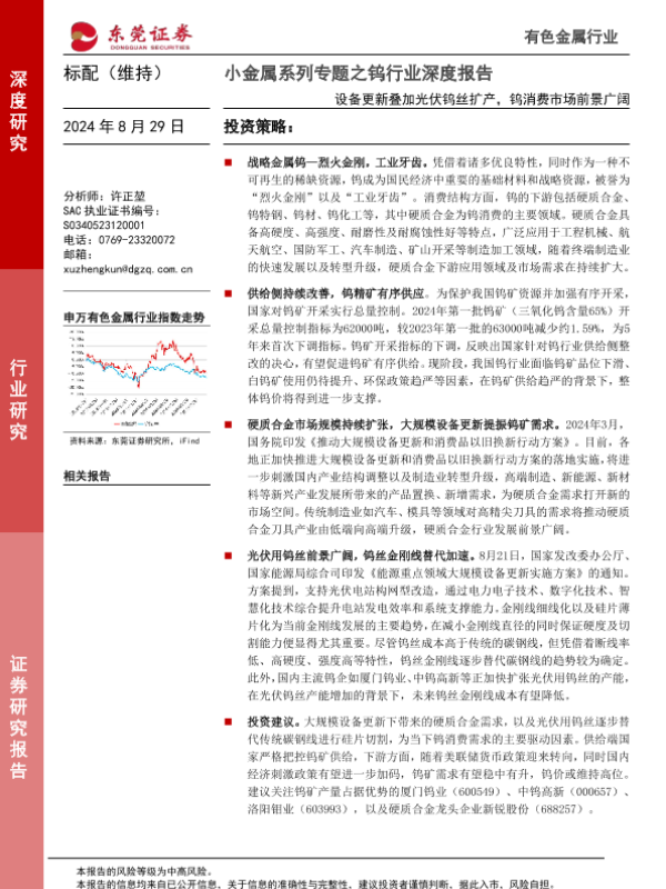 【东莞证券】【20240829】小金属系列专题之钨行业深度报告-设备更新叠加光伏钨丝扩产-钨消费市场前景广阔-23页