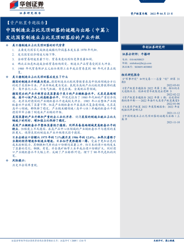 【华创证券】【20220423】中国制造业占比见顶回落的谜题与出路(中篇):发达国家制造业占比见顶回落后的产业升级-22页