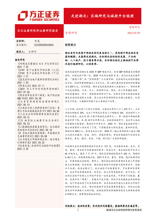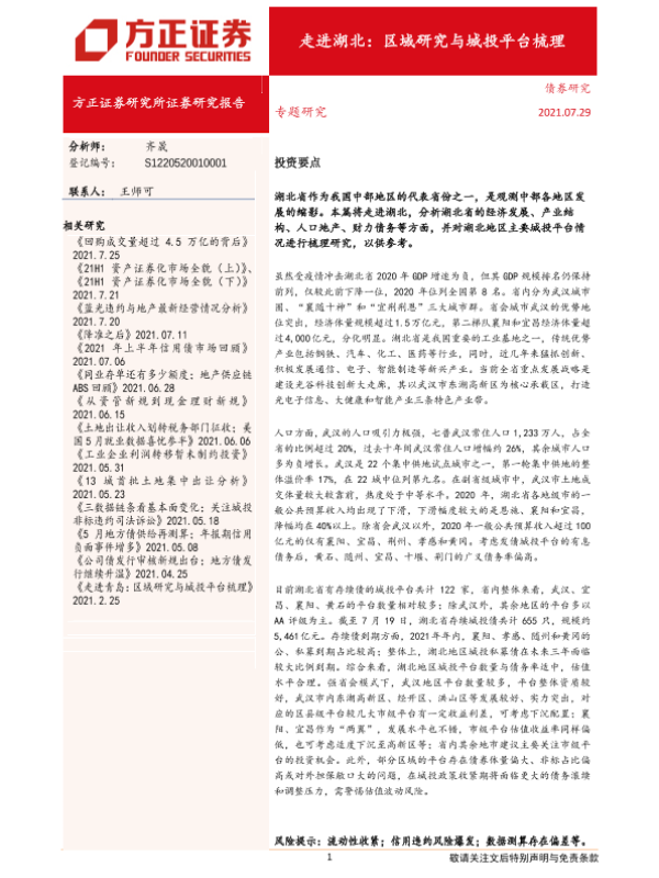 【方正证券】【20210729】专题研究:走进湖北,区域研究与城投平台梳理-21页