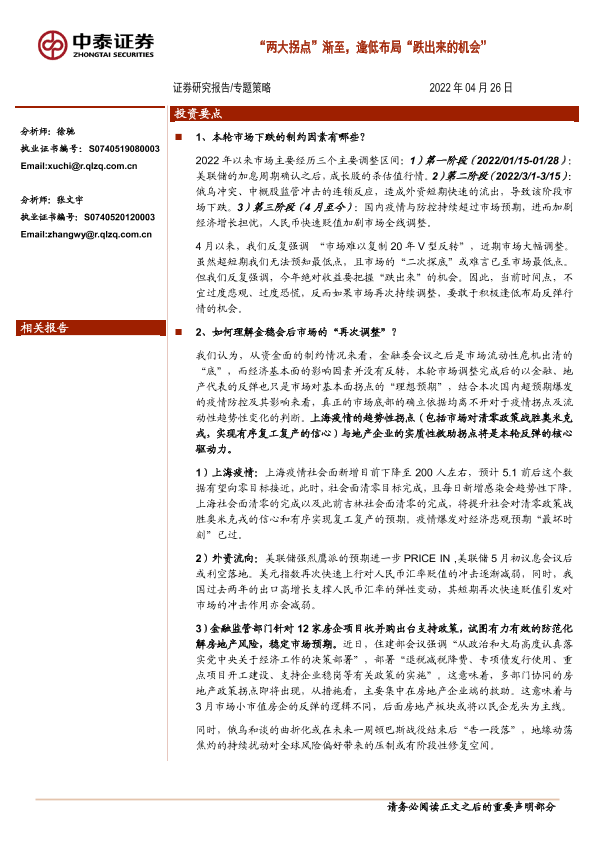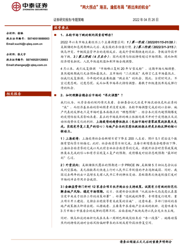 【中泰证券】【20220426】专题策略:“两大拐点”渐至,逢低布局“跌出来的机会”-16页