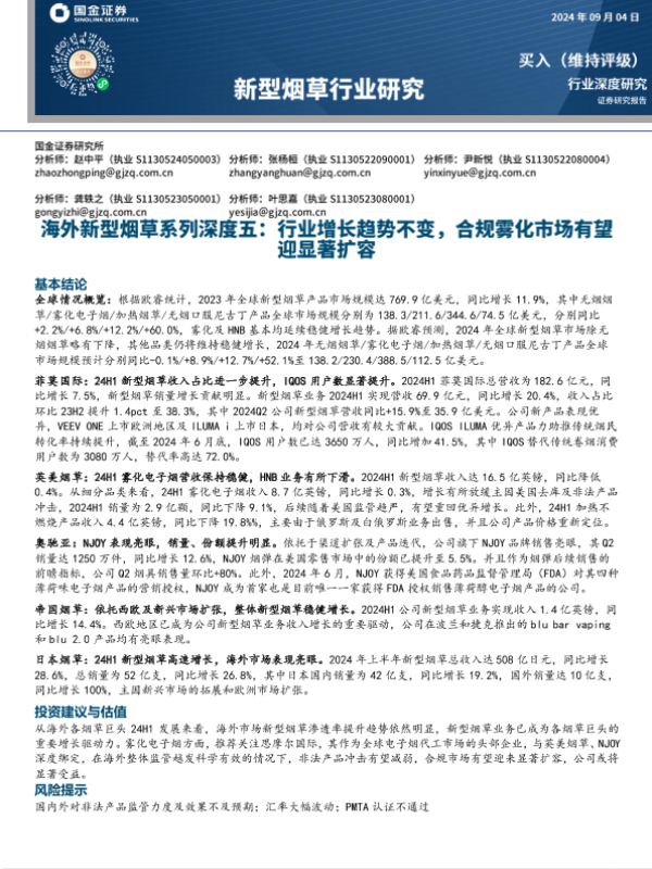 【国金证券】【20240906】海外新型烟草系列深度五-行业增长趋势不变-合规雾化市场有望迎显著扩容-25页