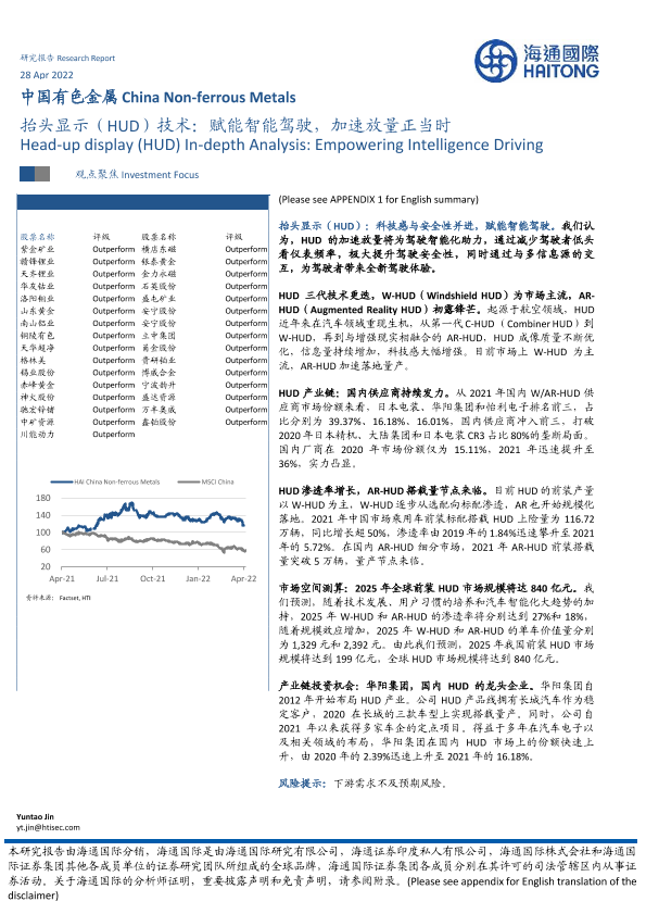 【海通国际】【20220428】中国有色金属行业:抬头显示(HUD)技术,赋能智能驾驶,加速放量正当时-25页