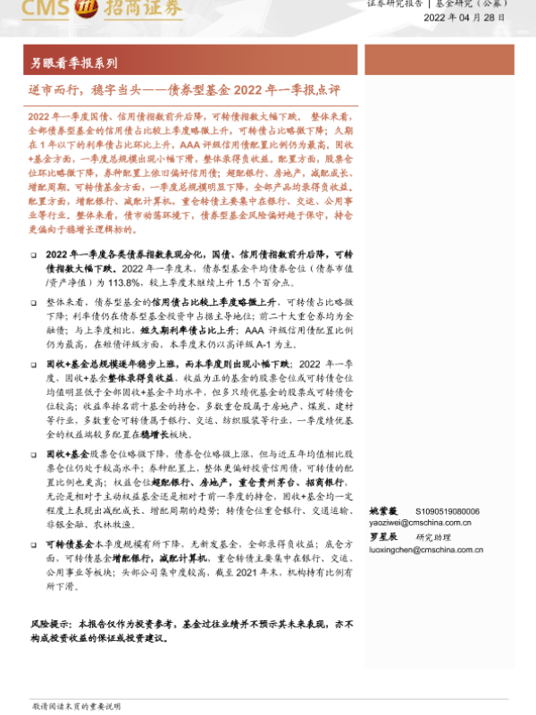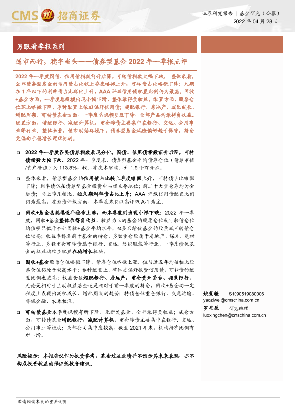 【海通证券】【20220428】债券型基金2022年一季报点评:逆市而行,稳字当头-18页