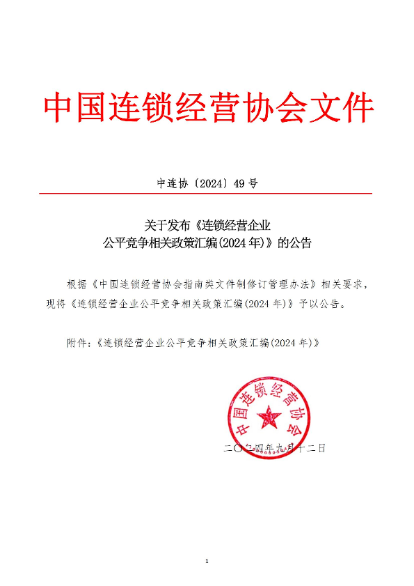 【中国连锁经营协会(CCFA)】【20240919】2024年中连协连锁经营企业公平竞争相关政策汇编-165页