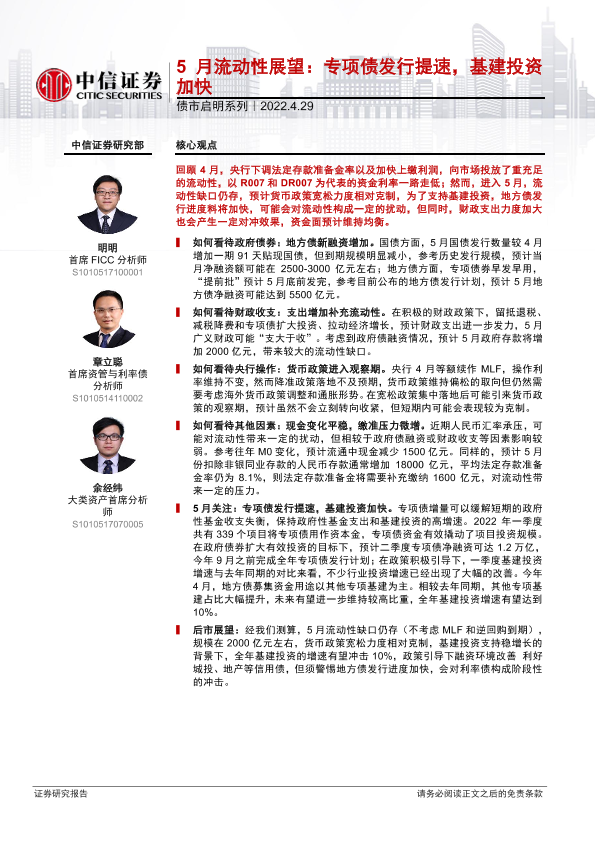 【中信证券】【20220429】债市启明系列:5月流动性展望,专项债发行提速,基建投资加快-38页