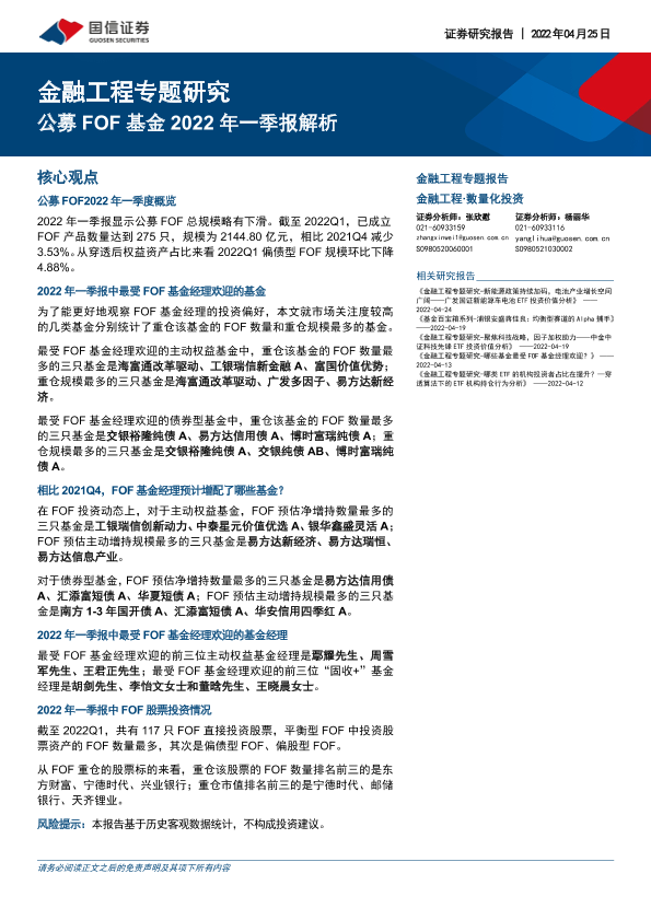 【国信证券】【20220425】公募FOF基金2022年一季报解析-20页